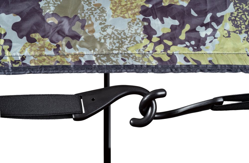 Durch sein teleskopierbares Gestänge ist eine flexible Höhenverstellung von 1,2 bis 2,7 m und daher auch das bequeme Schießen im Stehen möglich. Seine zwei Meter Spannbreite bieten auch für Hund und Ausrüstung genügend Platz.