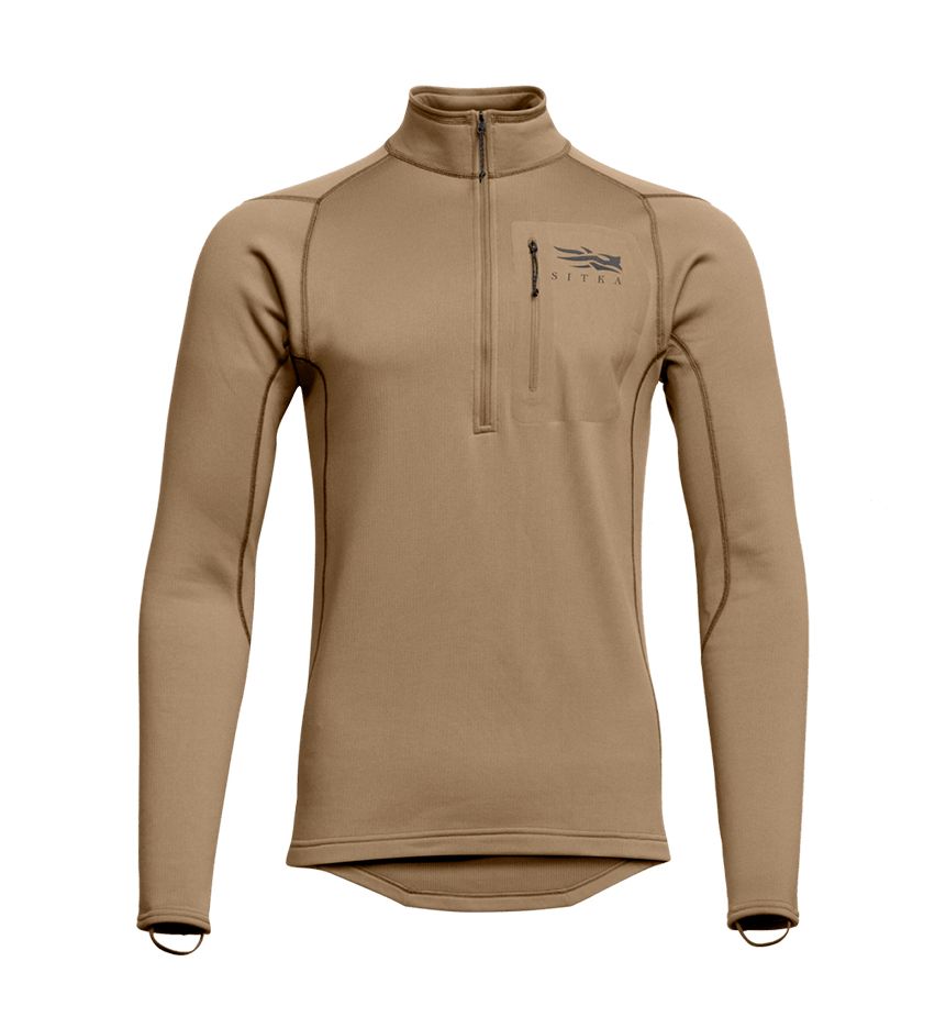 Das SITKA Core Midweight Zip-T ist das mittelstark isolierte Shirt. Es ist mit einem bis zur Brust reichenden Reissverschluss und leicht erhöhtem Rundhalsausschnitt versehen. Das Midweight Zip-T kann sowohl einzeln als auch als Unterziehshirt in Kombination mit weiteren Schichten direkt auf der Haut getragen werden.
