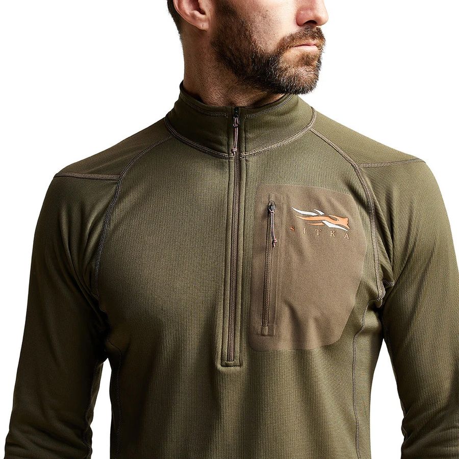 Das SITKA Core Midweight Zip-T ist das mittelstark isolierte Shirt. Es ist mit einem bis zur Brust reichenden Reissverschluss und leicht erhöhtem Rundhalsausschnitt versehen. Das Midweight Zip-T kann sowohl einzeln als auch als Unterziehshirt in Kombination mit weiteren Schichten direkt auf der Haut getragen werden.