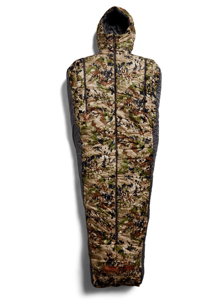 Mit einer Komforttemperatur von 30 Grad ist dieser Schlafsack als Erweiterung des SITKA Bekleidungssystems für den ganzjährigen Einsatz konzipiert – und das selbst unter den feuchtesten Bedingungen. Die Jacket-ähnlichen Merkmale umfassen praktische Reißverschluss-Armlöcher, konturierte Schultern und Kapuze sowie einen zweiwegigen Frontreißverschluss.