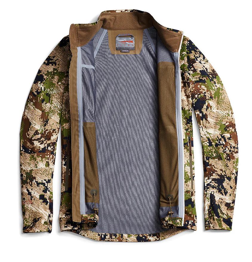Die SITKA Mountain Jacke ist äußerst leichtgewichtig, nicht stark isoliert, aber dennoch winddicht. Sogar die Nähte sind winddicht versiegelt. Sie eignet sich als Zwischen- und Außenschicht gleichermaßen. Die zwei Seitentaschen und eine Brusttasche sind jeweils mit Reissverschlüssen ausgestattet. Das Außenmaterial besteht aus robustem Nylon.